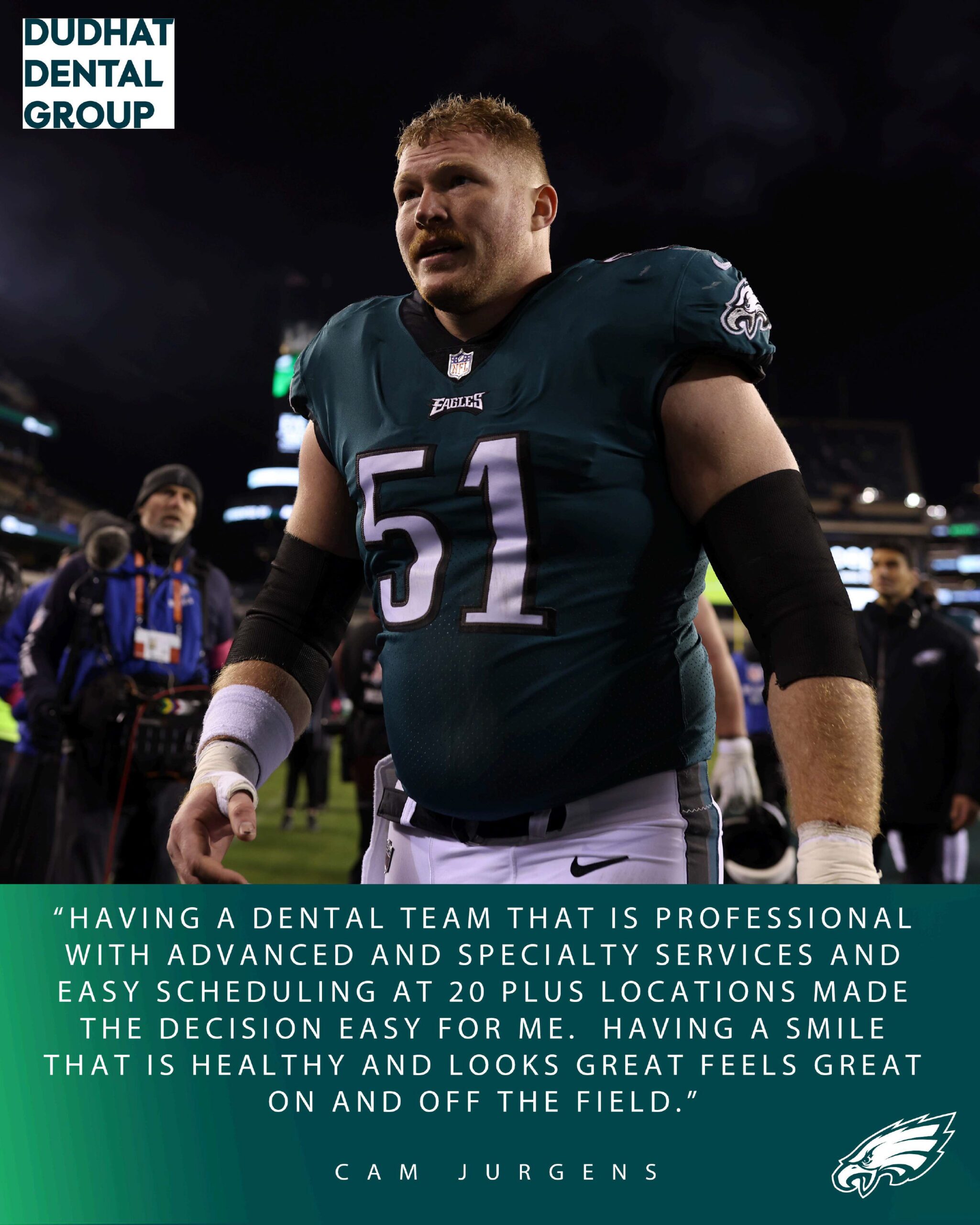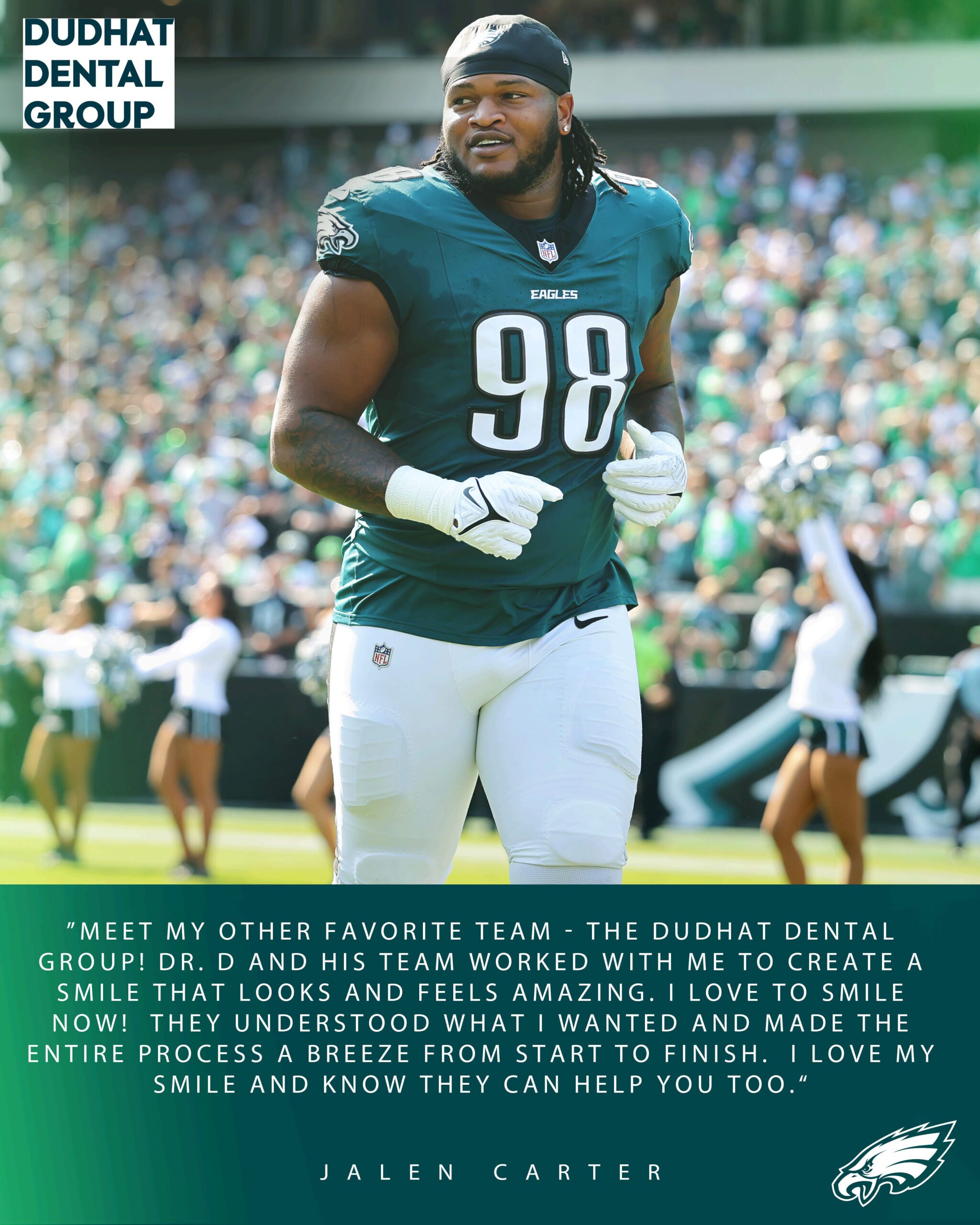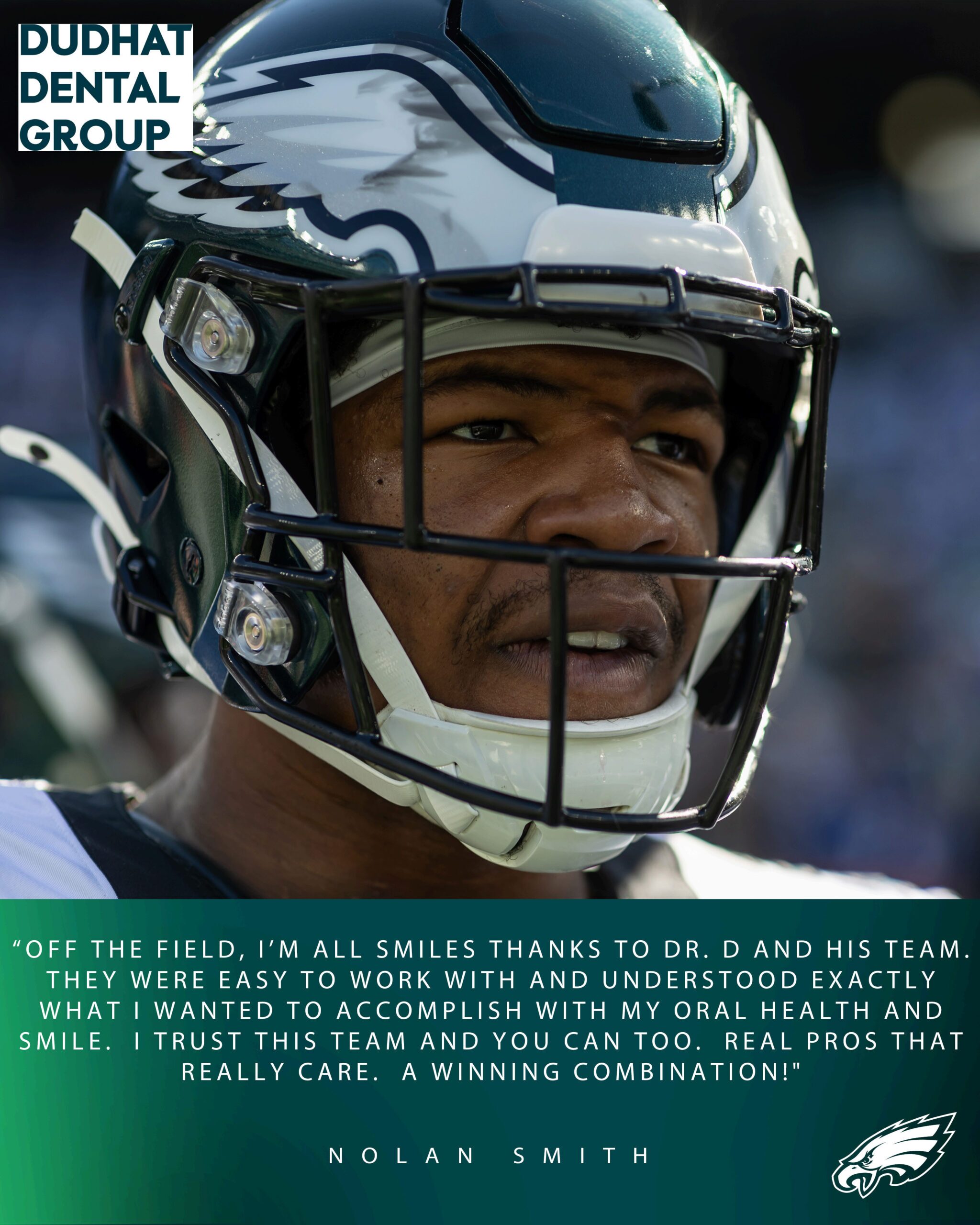 In 2021, we were chosen to be the dental partner of the Philadelphia Eagles. It’s an honor and privilege to safeguard the oral health of our city’s top-level NFL talent. It means a great deal knowing the players and their support staff recognize and value what we do and have placed us at the top of the pack to help them achieve game-winning smiles.